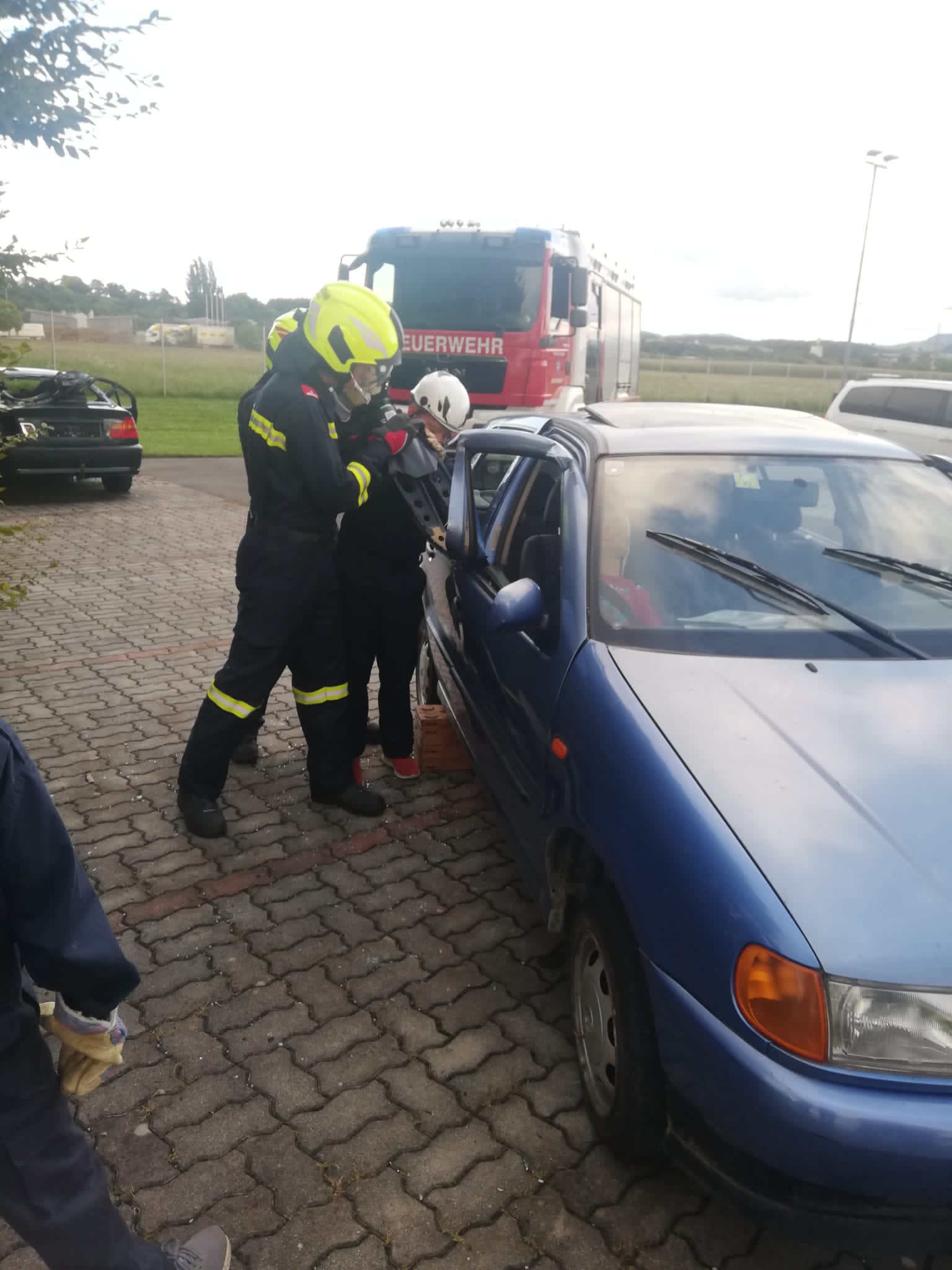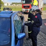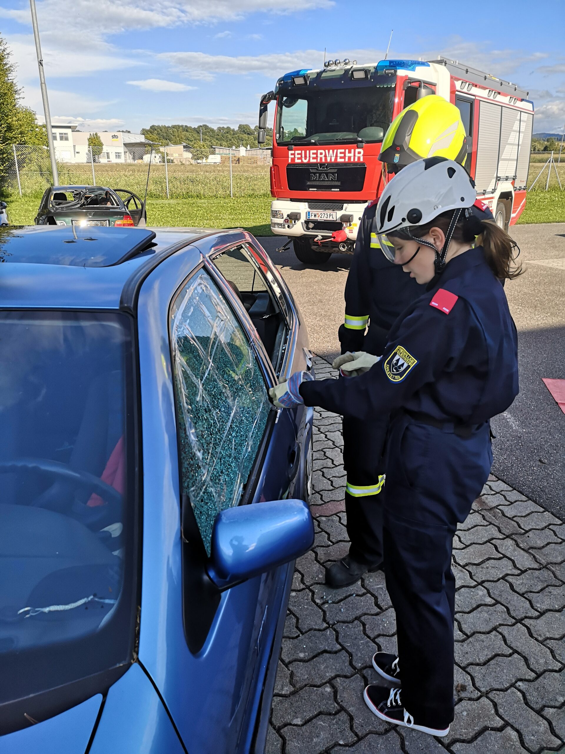 Bei der Station „technischer Einsatz/Verkehrsunfall“ galt es mittels Akku-Schere/-Spreitzer und Federkörner Zugangsöffnungen beim Fahrzeug zu schaffen und anschließend wurde die „Personenrettung“ durchgeführt.